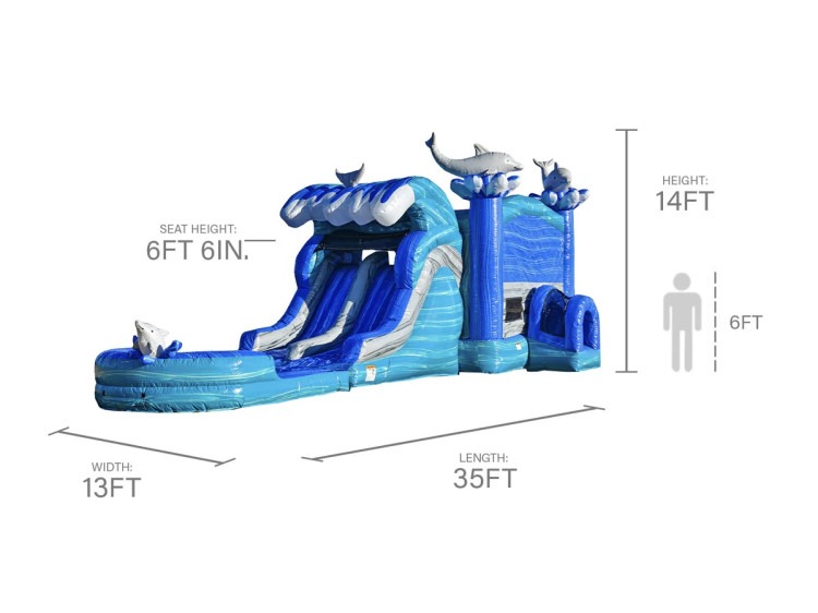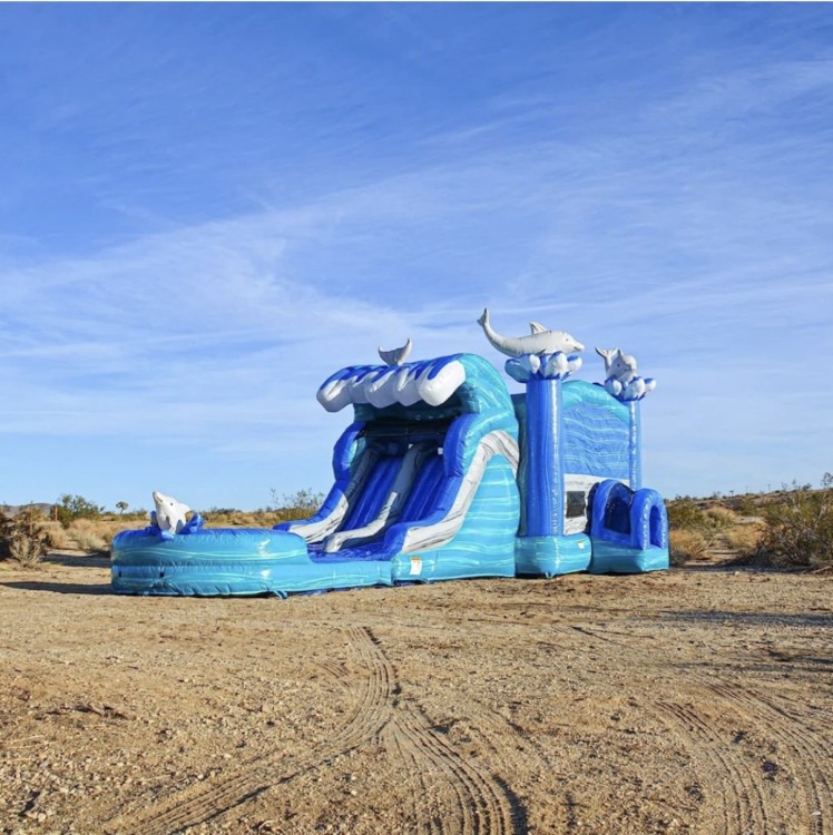 Dive into a world of fun with the Dolphin Dual Lane Combo. This rental features two separate lanes designed for side-by-side play, letting teams or friends race and compete in a safe, thrilling environment. Its unique setup creates endless opportunities for excitement at any event. Pool will be removed for dry rentals.